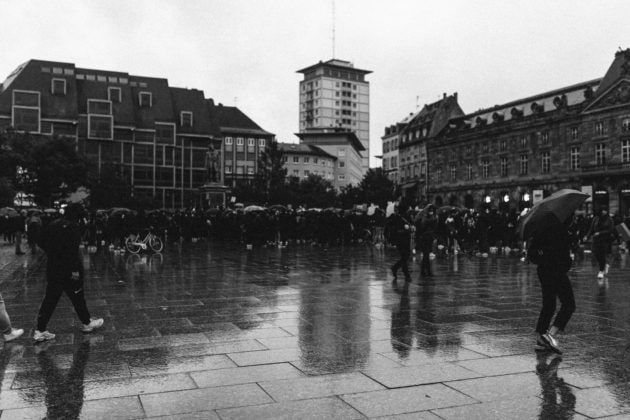 Vers 21 heures, la pluie intermittente avait déjà poussé la majorité des manifestants à quitter les lieux. Un groupe d’une cinquantaine de personnes s’est alors rendu devant le tribunal judiciaire de Strasbourg. Devant l’édifice, ils ont continué de réclamer la fin du racisme, des violences policières et de l’impunité. Les manifestants auraient aussi pu réclamer « Justice pour Abdou », du prénom du Strasbourgeois accusé de violence contre un policier fin mai. Au cours d’une audience en comparutions immédiates mardi 2 juin, le visionnage de la vidéosurveillance au commissariat a permis de révéler que l’accusé avait été frappé au visage par un policier pendant sa garde à vue.