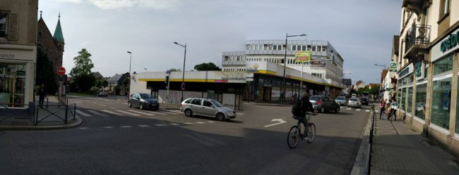 Dans les esquisses du cabinet Aubry & Guiguet, il était question de boucher la rue de Wissembourg au niveau du cimetière, pour transformer la placette devant l’église en une esplanade piétonne jusqu’à la médiathèque, appelée agora, et d’ouvrir l’arrière de la médiathèque sur le jardin de la Résistance (voir ci-dessous).
