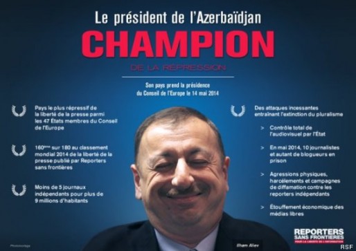 Alors qu’en Azerbaïdjan, le paysage médiatique est muselé par les autorités, la presse libre peine à s’établir et les médias indépendants tentent de survivre face à un climat d’intimidation et de peur. Deux journalistes français de cash investigation (France2) se sont fait expulser du territoire par les forces de sécurité qui ont également saisi leurs interviews et leurs images. Le pays occupe la 160e place sur 180 du classement mondial 2014 de la liberté de la presse. Le Club de la presse de Strasbourg appelle à une mobilisation pour la liberté d’expression en Azerbaïdjan, devant le Conseil de l’Europe, au moment même où le président Ilham Aliyev prononcera son allocution.