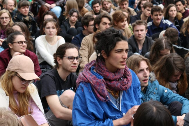 « Des étudiants syndiqués ? Oui, il y en a, mais très peu. Le mec là-bas fait partie de l’Unef (Union Nationale des Etudiants de France, un syndicat classé à gauche, proche du Parti socialiste), » désigne de la main un étudiant qui souhaite rester anonyme, lors d’une assemblée générale sur le campus de Strasbourg. « Il y a aussi les anti-spécistes de ce côté-là, indique Eva, 25 ans, étudiante en Master d’Histoire. Ils ont un côté anarchiste et écolo. »