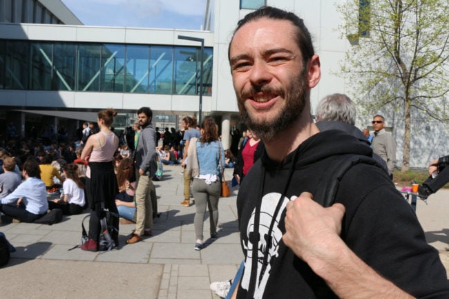 « Si je suis venu c’est un peu par curiosité. Mais je vais rester pour voter contre les blocages. Les gens sur le campus ont un peu l’impression d’un deuxième mai 68, qu’il suffirait d’une étincelle pour mettre le feu aux poudres, notamment parmi les étudiants politisés. Mais dans les faits, je ne suis pas sûr que la fuite de gaz ait eu lieu. Ces rassemblements, de ce que j’ai pu en voir, m’ont tout l’air d’être très pacifiques. »