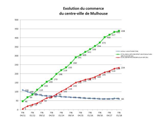 Des mesures qui semblent payer, en témoignent de très bons chiffres. En 2016, Mulhouse était une des seules villes à connaître plus d’ouvertures que de fermetures, d’après Frédéric Marquet :
