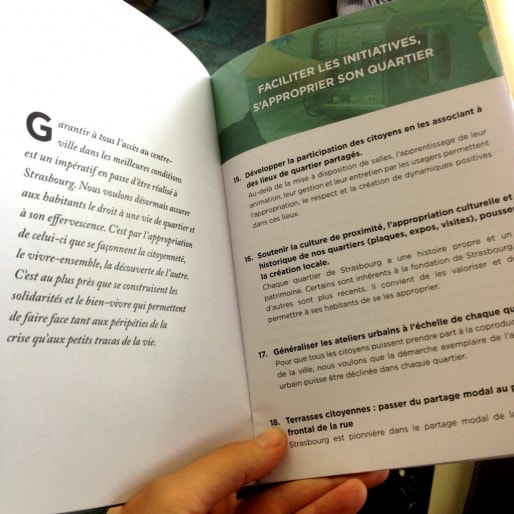 Utilisation des friches, réhabilitation des locaux de la Coop pour en faire un centre d’art et d’économie numérique, augmentation du rythme des constructions à 4000 logements par an et mise en place d’un plan de lutte contre l’insalubrité dans le parc social, mise en place de « mini-grids », des réseaux électriques par pâtés de maisons, capables d’équilibrer la consommation d’énergie entre bâtiments passoires thermiques et bâtiments passifs voire positifs (qui produisent plus qu’ils ne consomment, comme la tour Elithis), réseau de troc entre voisins, etc. Ces propositions sont variées et ne seront pas toutes, loin s’en faut, bien accueillies ou comprises par les élus et militants.