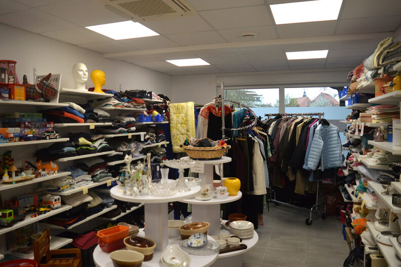 Dans une pièce voisine, Caritas a installé une boutique avec divers articles comme de la vaisselle, des habits ou des jouets pour enfants, vendus à bas prix. « L’aménagement nous a couté 550 000 euros au total, dont 200 000 euros partagés équitablement entre la Ville de Strasbourg et la Collectivité européenne d’Alsace », détaille le directeur de Caritas Alsace.