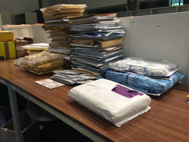 Une dizaine de personnes sont en charge de réceptionner et de lire les courriers qui arrivent chaque jour à la Cour. Pas moins de 1 000 lettres, fax ou e-mails, lui sont adressées quotidiennement. Avec des écritures plus ou moins lisibles et dans plus de 40 langues différentes, certaines d’entre elles sont plutôt atypiques, comme celle contenue dans une enveloppe sur laquelle est déjà écrit en minuscule une partie des revendications.