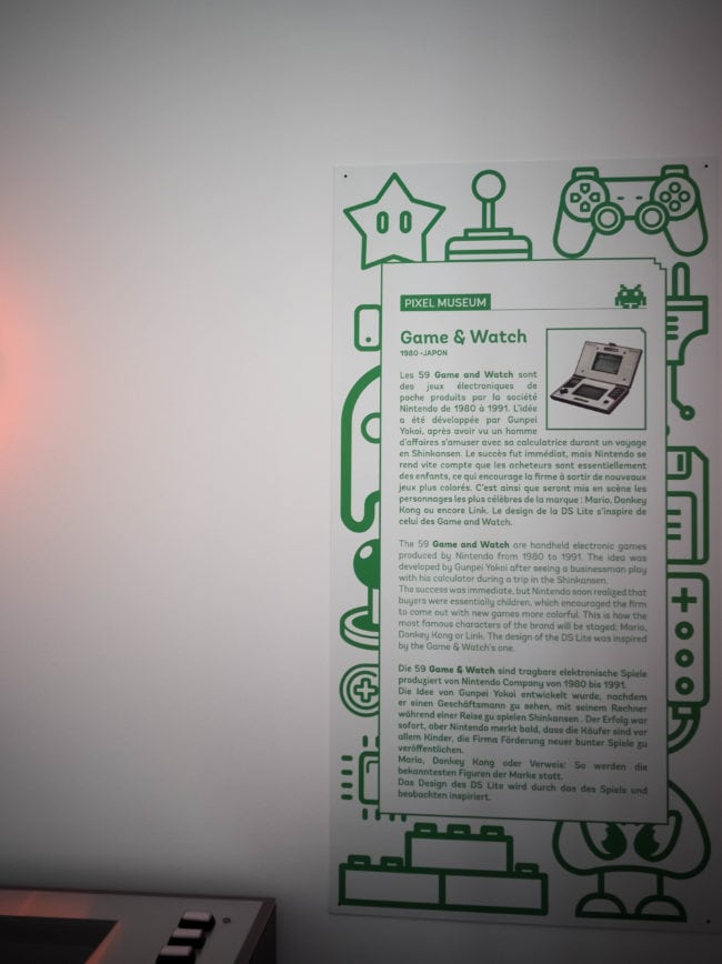 Une fois la porte d’entrée franchie, le hall d’entrée se consacre aux expositions temporaires. Pour débuter, Mario et Zelda, les deux grandes licences de Nintendo, sont mis à l’honneur en attendant la sortie de la console Nintendo Switch, le 3 mars.