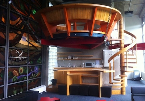 Ce bâtiment imaginé par les architectes norvégiens Lund et Slaattoen et inauguré en 1972 fête ses 40 ans cette année. Il a la particularité de proposer des chambres, un sauna et des lieux très colorés financé par les pays (l’espace Suisse, Belge, Autrichien, ….).