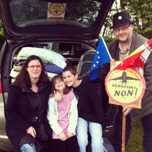 Après une nuit à dormir tous les quatre dans la voiture, sur une petite route de campagne entre Nantes et la « ZAD » (« zone d’aménagement différée », renommée « zone à défendre » par les opposants au projet d’aéroport du Grand ouest à Notre-Dame-des-Landes), la famille doit retrouver un autre équipage d’une dizaine de personnes passées par Strasbourg, Sélestat et Colmar, arrivé au petit matin.