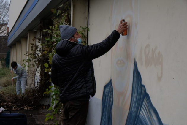 Une activité inhabituelle règne sur le parking de l’ancien supermarché de l’Elsau ce samedi 5 décembre. Malgré le froid, plusieurs personnes s’activent devant le bâtiment désaffecté. Responsable de la partie elsauvienne de la Fabrique Artistique Culturelle et Citoyenne (FACC), Mouss passe le balai au pied du mur. Marc, éducateur spécialisé, scrute le sol à la recherche de seringues. Cyril, fondateur de l’association Mix’cités, graffe le portrait d’une habitante du quartier sur la façade.