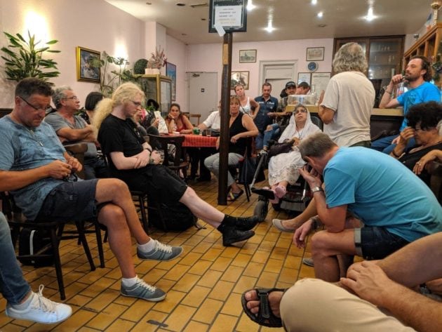 Vers 19h, Bilal Hizoune entre dans le restaurant de Paris. Casquette Calvin Klein, chaussures Nike et ordinateur sous le bras, le nouveau venu détone du reste des participants. Il est accueilli froidement : « Je suis fâchée parce que ce que tu as fait c’est malpoli », commence Sandrine. Le militant affirme avoir demandé une autorisation de manifester le 7 septembre à Strasbourg. La Préfecture du Bas-Rhin n’a toujours reçu aucune demande. Mais pour les Gilets jaunes présents ce soir, le problème est autre : Bilal n’a pas consulté la coordination Grand Est. Le jeune homme ne se démonte pas pour autant : « Vous venez ou vous ne venez pas, ça ne m’empêchera pas de manifester… »