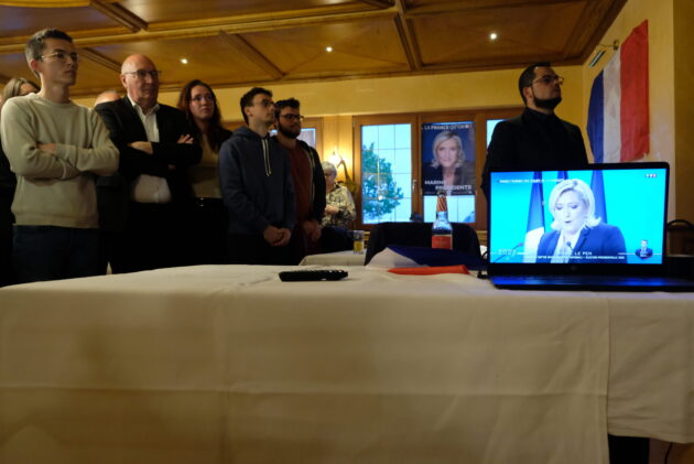 Le député allemand est interrompu lorsque Marine Le Pen apparaît à l’écran derrière lui. La déception se lit sur les visages, certains ont le regard vide, d’autres ont du mal à retenir leurs larmes. Le public applaudit lorsque la candidate RN exhorte ses troupes à se mobiliser pour les élections législatives de juin. « Nous présenterons des candidats dans toutes les circonscriptions », assure la conseillère régionale RN Nathalie Aubert.