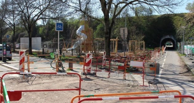 Jeudi 26 mars, les grands chantiers strasbourgeois sont à l’arrêt. Aux Deux-Rives, rien ou presque n’est avancé. Seuls quelques ouvriers déposent des arbres sur la Presqu’île Citadelle. Pas de mouvement place de l’Étoile, ni sur le chantier du tram à Koenigshoffen, pas plus pour la rénovation du quartier Laiterie.