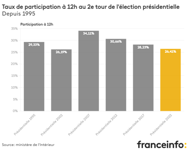 En France, la participation moyenne s’établit à 26,41%, quasiment identique à celle de 2017.