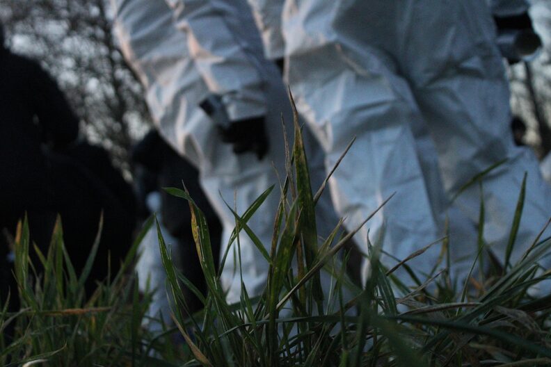 D’après les DNA, d’importants moyens policiers ont été mis en œuvre pour intervenir sur le site : gendarmes du peloton de surveillance et d’intervention, brigade motorisée d’Altkirch, hélicoptère, police municipale. Les activistes sont parvenus à se disperser sans être attrapés par les forces de l’ordre. Sur les photos parvenues à Rue89 Strasbourg, on peut lire des tags réalisés pendant l’action : « Nous ne sommes pas les dindons de Lafarge » ou « Assassins » en dessous du logo d’Holcim.