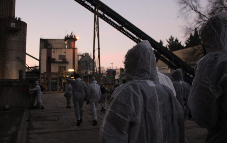 « Le groupe Lafarge / Holcim, en plus d’être impliqué dans le bouleversement écologique en cours, dans la pollution de l’eau et dans l’artificialisation des sols, a été condamné pour son financement de l’État islamique en Syrie. De plus, la production de béton est à l’origine de 8% des émissions de CO2 de la France. Nous avons choisi la cimenterie d’Altkirch qui fournit du béton pour le Grand-Paris et pour le confinement de Stocamine à Wittelsheim. »