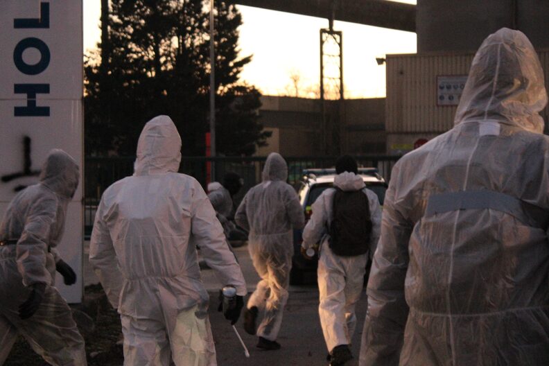 Vêtus de combinaisons blanches, une quarantaine de militants écologistes se sont introduits dans la cimenterie Holcim d’Altkirch, au sud de Mulhouse, samedi 16 décembre.