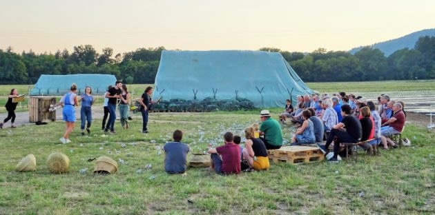 Les Ombres des Soirs, c’est une équipe de huit jeunes comédiens de Strasbourg. Du 15 juillet au 22 août, ils arpentent la grande région en installant une scène dans des lieux inhabituels, le temps d’un soir ou deux : fermes, jardins, manoirs…