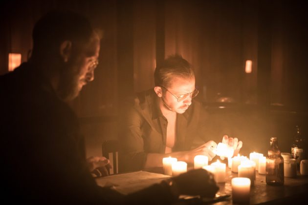 Au fur et à mesure des spectacles, la scénographie se fait de plus en plus opaque. Aux espaces de lumière clinique des Joueurs succèdent la lumière tamisée du bureau de Bill Gray, puis les lueurs de bougies où s’échangent des confidences sur la secte sans nom. La fumée bouche la vue.