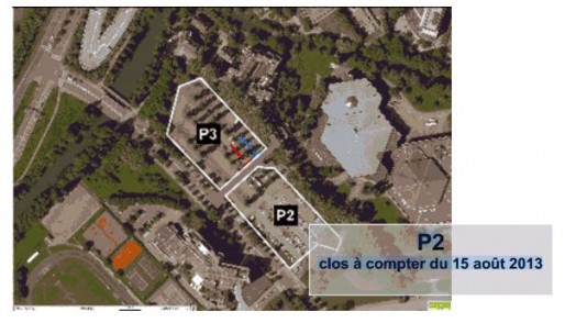 Dans le cadre des travaux de modernisation et d’extension du Palais de la Musique et des Congrès (PMC), la Ville procède à partir du 15 août à la fermeture définitive du parking P2, situé entre la rue Strauss, l’avenue Herrenschmidt et le nouveau tronçon de la rue du Tivoli.
