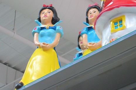 Si vous voulez rapporter un objet-souvenir original de ce voyage au bout de la zone vous le trouverez à la Jardinerie du Leclerc au milieu des bidons de Round Up et des bataillons de nains de jardin : une Blanche Neige en terre cuite émaillée légèrement « ratée de cuisson » avec la tête déformée. Une Blanche Neige qui aurait été bercée trop près du mur.