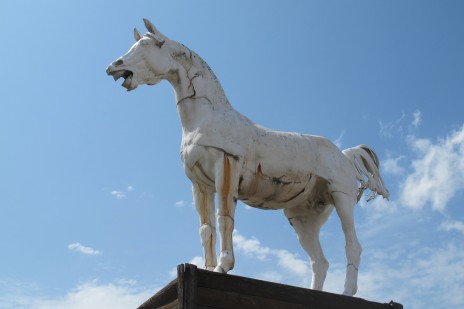 Pas de cheval vivant non plus à Horse Wood. Mais sur le parking trône fièrement une statue équestre grandeur nature qui rappelle un peu la sculpture de Paladino sur le toit du MAMCS à Strasbourg, en moins stylisée.
