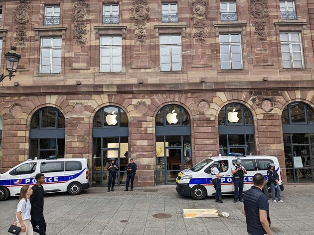 Le magasin Apple Store place Kléber, précédemment pillé, est désormais gardé par des policiers.