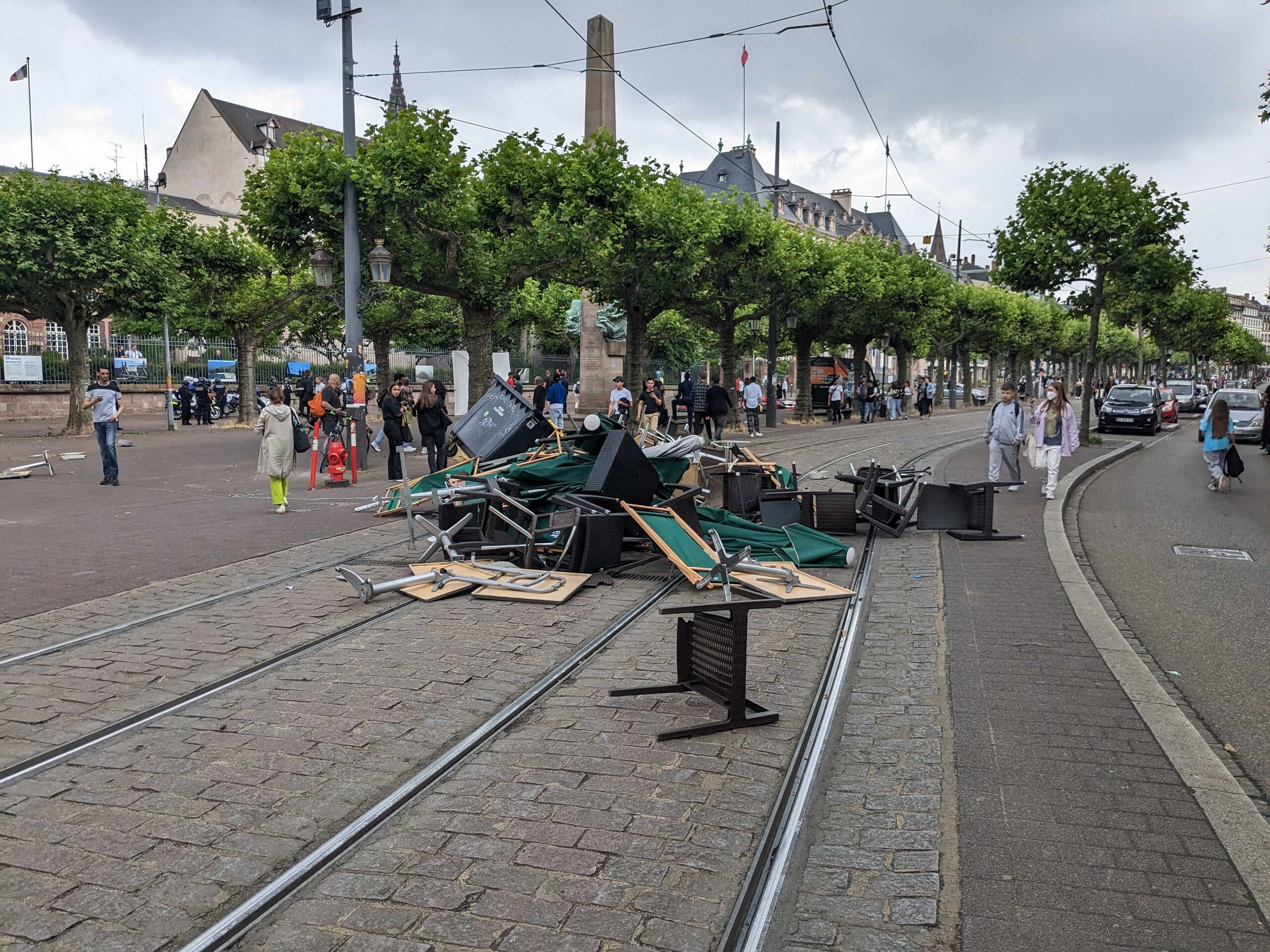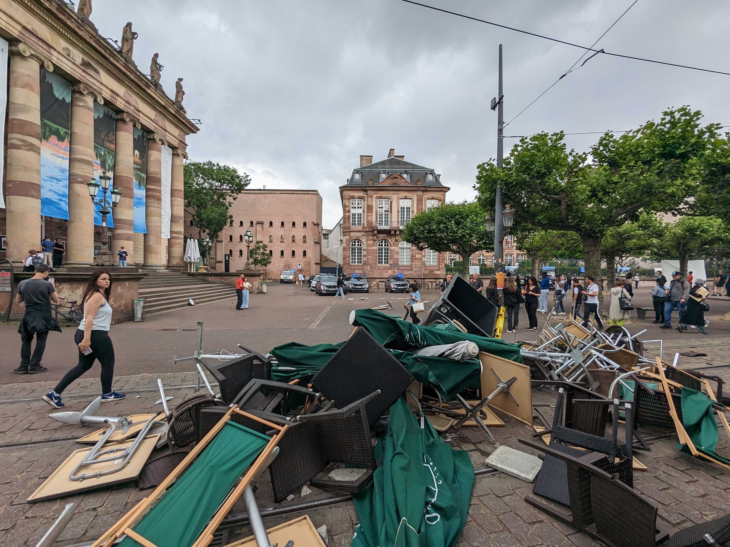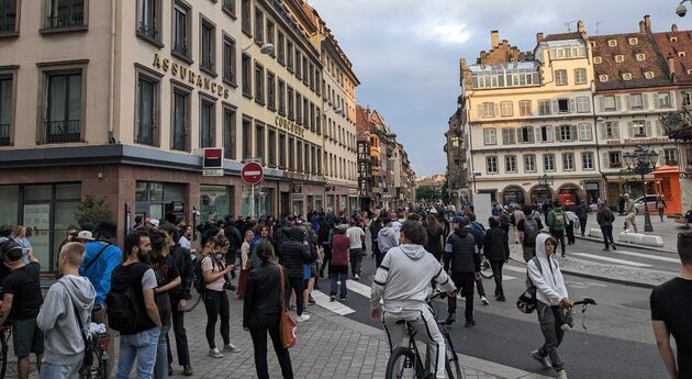Des émeutiers sont de retour place Kléber, la police fait usage de gaz lacrymogène au milieu des passants venus profiter du premier vendredi des soldes…