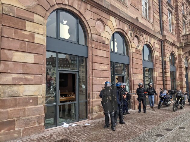 Une petite bande s’est attaquée aux vitres de l’Apple store de Strasbourg, place Kléber. L’une d’elle s’est brisée et a permis à quelques un d’entre eux de pénétrer dans le magasin.
