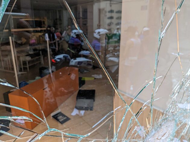 Les émeutiers ont disparu, des policiers gardent désormais l’entrée de l’Apple store.