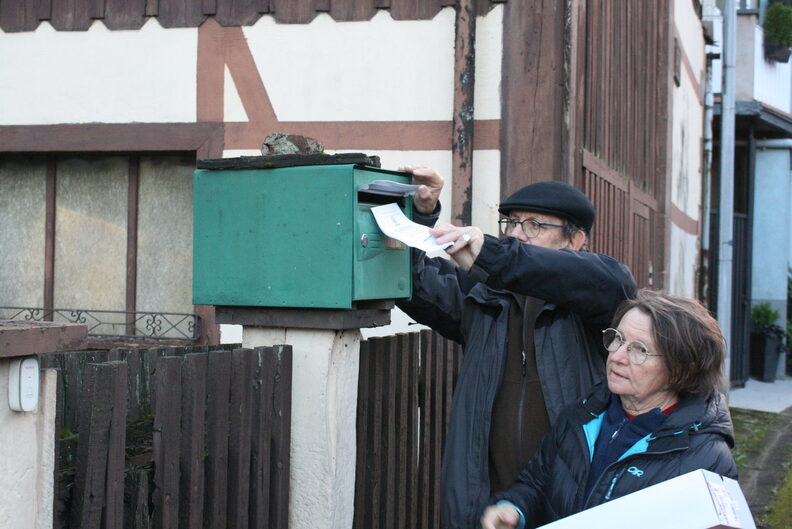 Comme le projet a été découvert tard par quelques habitants de la commune, ils doivent agir vite pour s’y opposer. « Quand les bulldozers seront là, tout le monde nous dira que c’est trop tard », s’alarme Jean-Jacques, membre du collectif Non au parc solaire. En fin d’après-midi le 8 novembre, sept personnes se répartissent des tracts exposant le projet pour les distribuer dans les boites aux lettres des habitants de Weinbourg. Leur première revendication est très consensuelle : ils proposent au maire de la commune et à Jean-Luc Westphal l’organisation d’une réunion d’information des riverains sur le parc solaire, ainsi que le report ou la prolongation de l’enquête publique. « On a aussi envoyé un courrier à la préfecture pour demander la même chose », précise Hector.