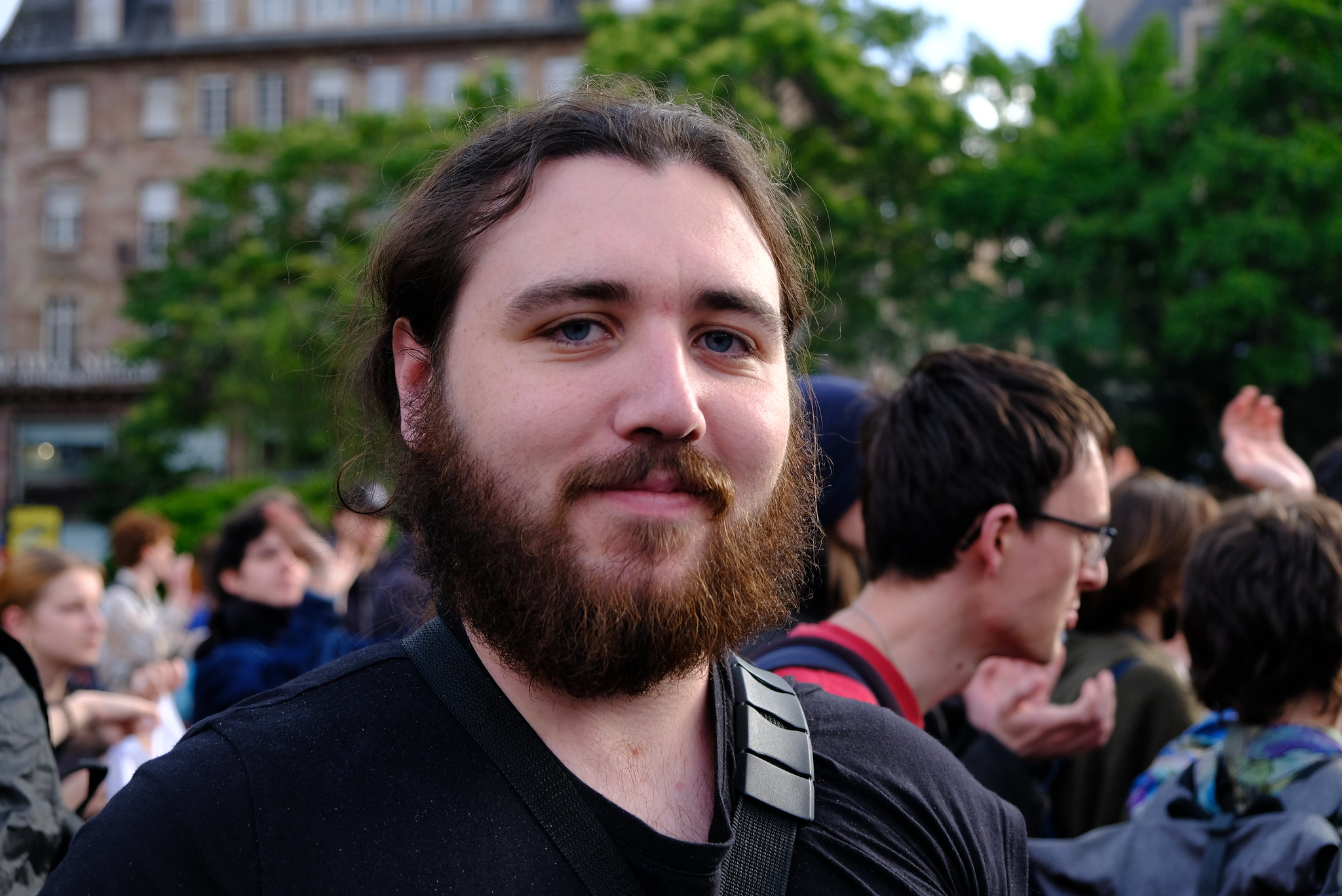 Vers 20h, un cortège de plusieurs dizaines de militants habillés tout en noir et aux visages masqués s’engage dans la rue des Francs Bourgeois. Le groupe est suivis par près d’un millier de personnes. Les manifestants et manifestantes passent à travers la Petite France, devant la faculté de Médecine, traversant le site du Nouvel Hôpital Civil vers la place d’Austerlitz.