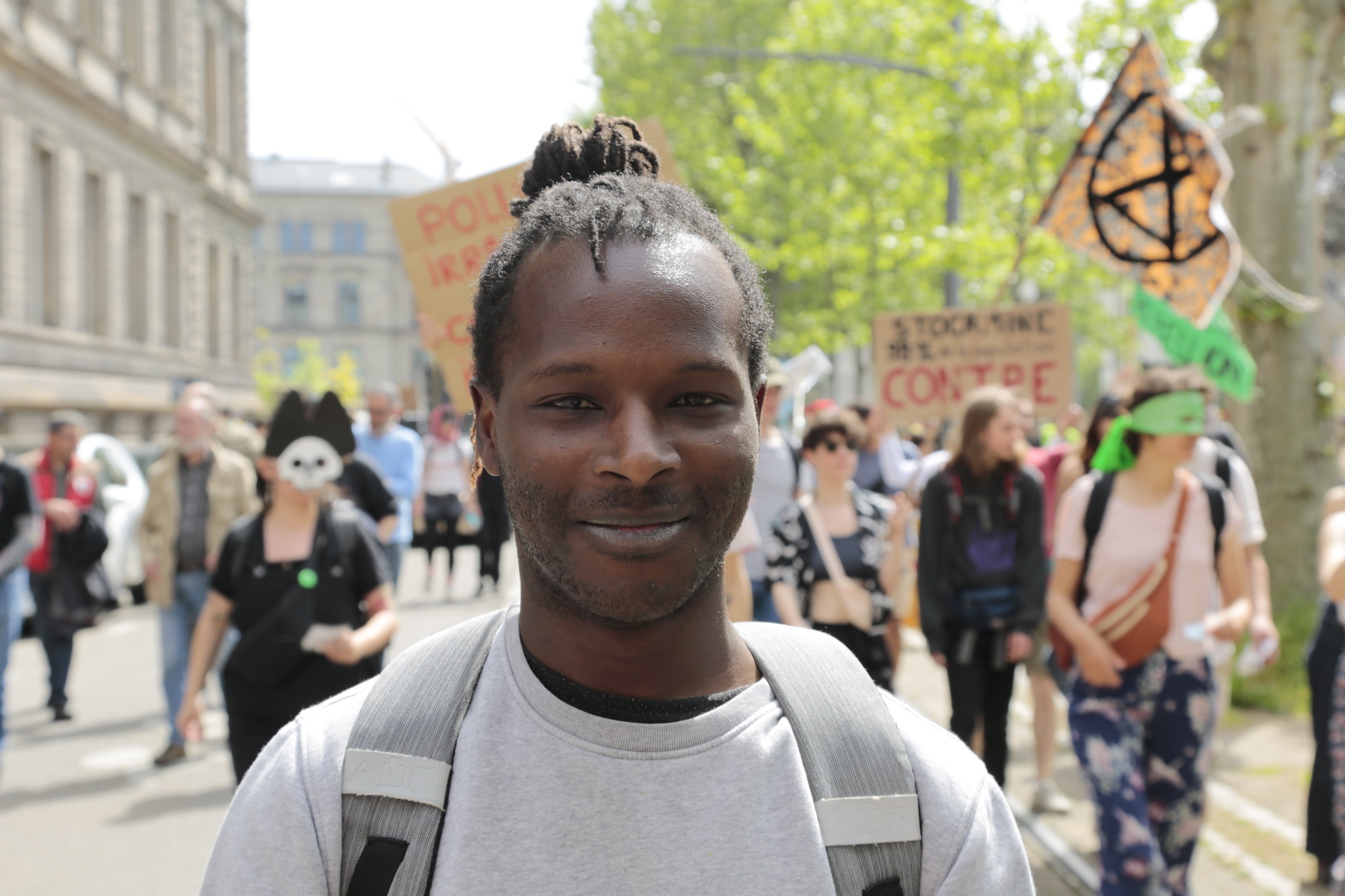 Rue de l’Observatoire, des écolos, des associations, des étudiants, des Gilets jaunes, des militants propalestiniens, soit environ la moitié des près de 3 000 manifestants se laissent entrainer par les sonorités et les couleurs du cortège de Retour de Flamme.