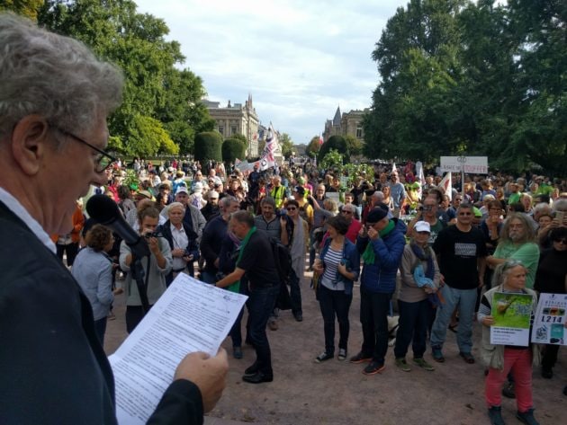 Le Collectif GCO Non Merci n’a pas réussi à rassembler plus de monde que lors de la fusion de sa manifestation avec la marche pour le Climat, un mois plus tôt. Samedi 6 octobre à Strasbourg, entre 1 500 et 2 000 personnes se sont rassemblées place de la République, devant la préfecture, pour dénoncer une nouvelle fois le projet d’autoroute de contournement de l’agglomération (GCO – Voir tous nos articles), soit deux fois moins qu’en septembre.