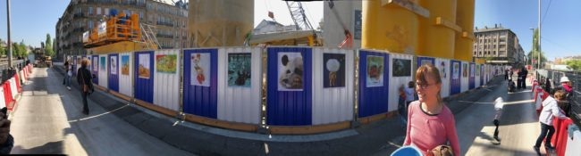 Quelques jours après Les Rencontres de l’Illustration, 50 anciens élèves de l’atelier d’illustration des Arts Décoratifs de Strasbourg ont décidé de recouvrir d’autant d’affiches les palissades du chantier sur l’îlot Printemps, quai Kellermann.