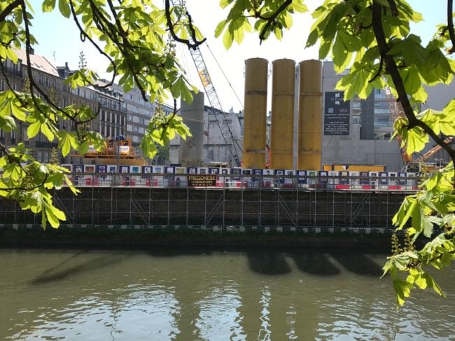 Une exposition spontanée, qui n’a pas de durée de vie programmée. Il s’agit d’affiches en papier simplement collées dimanche 9 avril, tôt le matin. Ce chantier va durer deux ans et demi et verra la marque de vêtements à bas prix Primark s’installer dans le centre-ville.