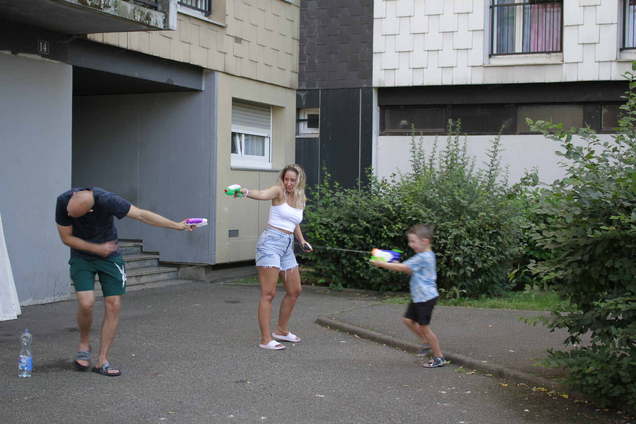 La queue devant l’établissement a découragé Loïc, un éboueur de 31 ans, d’aller se baigner avec son fils, Valentin. Ils compensent comme ils peuvent en s’adonnant à une bataille d’eau en règle, avec pistolets et courses-poursuite. « Je n’habite pas le quartier. Je suis passé voir ma mère qui habite Brigitte (l’une des mailles qui n’a pas encore été rénovée, NDLR), pour voir si tout allait bien. Il n’y a pas d’endroit pour se rafraîchir, donc les personnes âgées sont obligés de rester chez elles. C’est important d’être vigilant », relate Loïc.