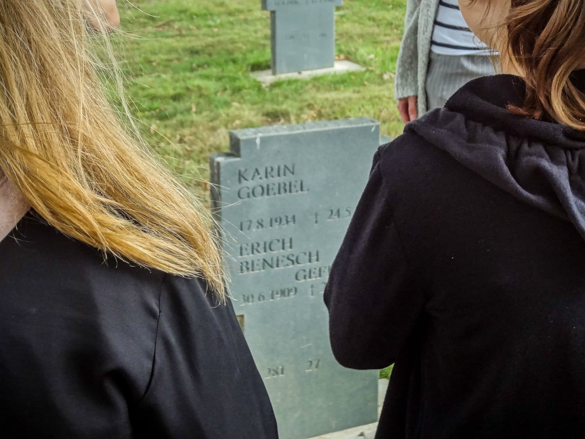 Pendant la discussion, ils se sont déplacés sur la sépulture de Karin Goebel. Petite fille de 9 ans tuée à Sarreguemines par un bombardement allié. L’assemblée aborde la question des victimes civiles dans la guerre. Un thème d’actualité que les jeunes connaissent bien. Les noms de Syrie et de Libye reviennent souvent dans leur bouche. Seul l’écho d’une fanfare qui joue dans le village brise le silence presque religieux qui règne désormais. Passé ce moment d’émotion, il est difficile de se reconcentrer.