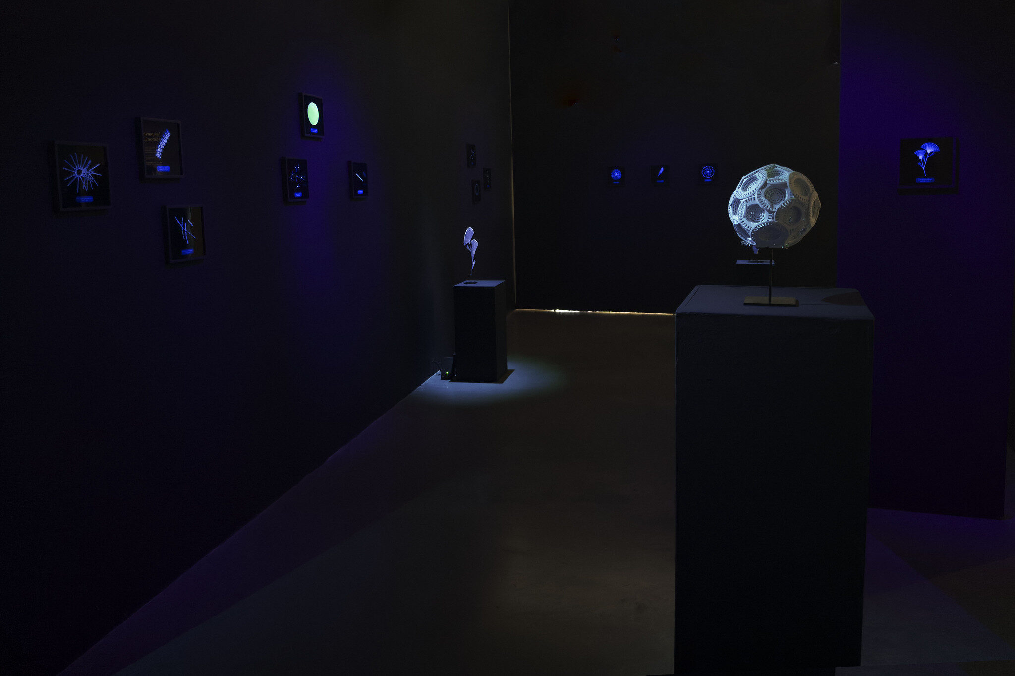 Ces peuples invisibles sont à l’origine de 40% de l’absorption du dioxyde de carbone et 60% de la production d’oxygène. Aujourd’hui, ils cohabitent avec les micro-plastiques, plus nombreux encore que les étoiles de notre galaxie. En récupérant des matériaux plastiques sur les plages ou dans les poubelles, l’artiste compose avec le monde de demain et imagine un plastique qui aurait remplacé la structure de ces phytoplanctons. Un voyage dans les limbes océaniques qui jongle entre le sublime et le fléau.