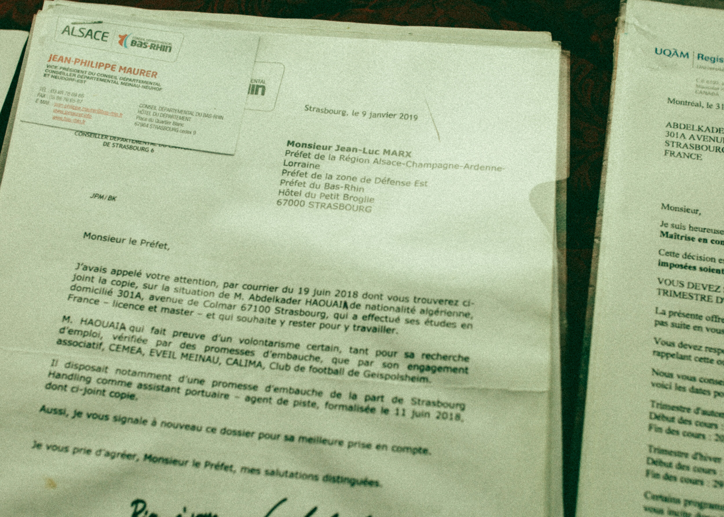 Il ne compte plus les lettres de soutien, les promesses d’embauches, les certificats, et autres documents officiels. Malgré un « dossier en béton », Abdelkader Haouaia avoue qu’il ne s’autorise plus à espérer, « de peur de subir encore une déception ». Cela fait 5 ans qu’il essaye inlassablement de régulariser son séjour en France :