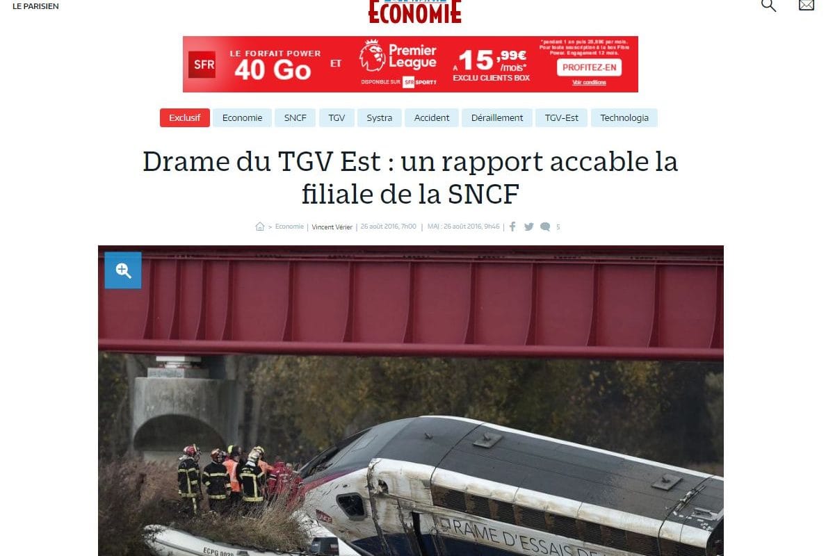 Le journal Le Parisien s’est procuré un rapport du cabinet Technologia au sujet de l’accident tragique du TGV à Eckwersheim. Survenu le 14 novembre 2015, le déraillement de ce TGV d’essai sur la nouvelle ligne LGV a provoqué la mort de 11 personnes et blessé 42 autres.