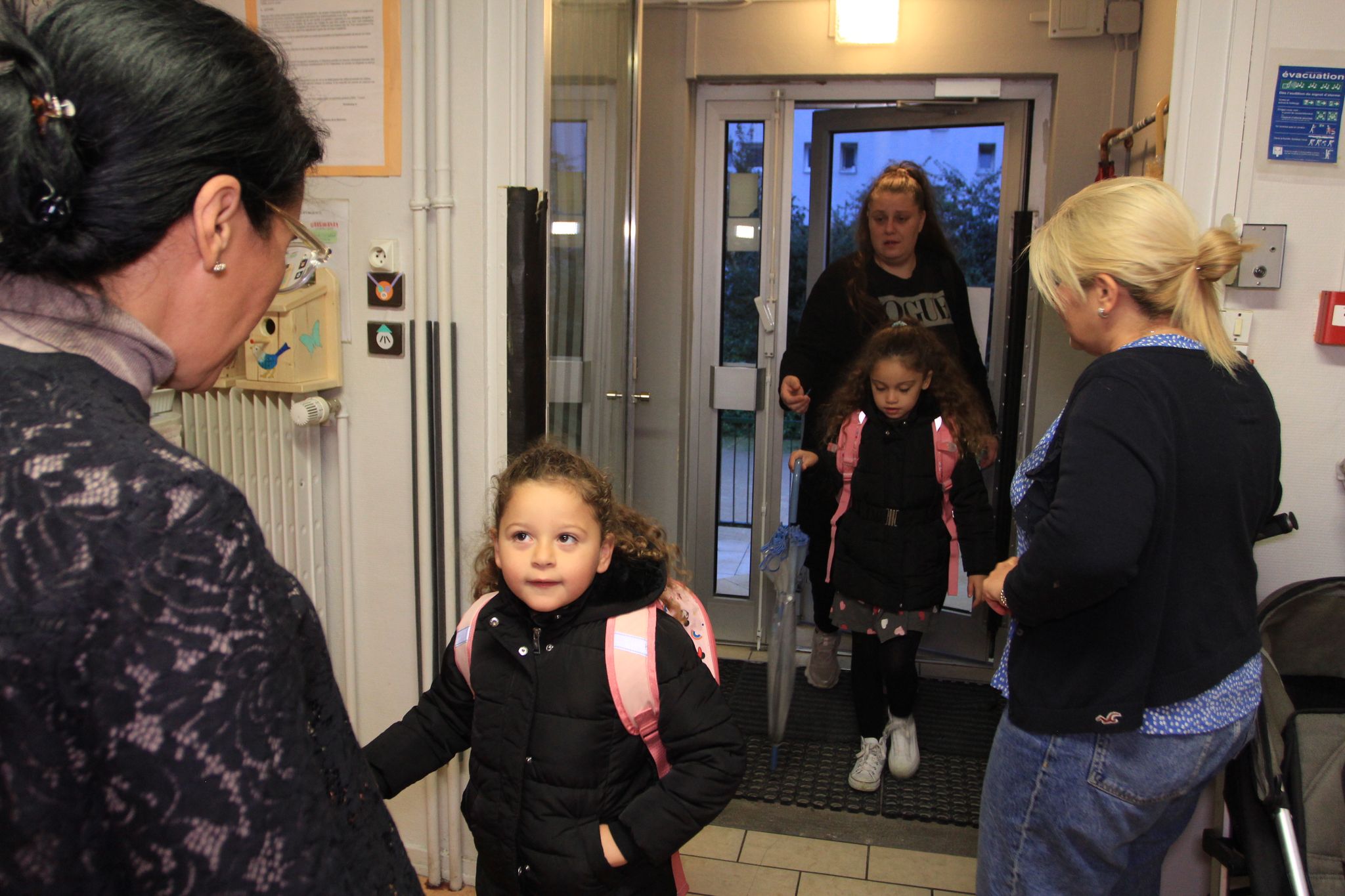 6h40, driiing. Maimouna, 7 ans, et Mame Diarra, 9 ans, arrivent. « Tout va bien ? », demande Naïma avec son sourire aussi doux que le miel, à la maman des deux filles. « Oui ! », répond hâtivement cette dernière, restée sur les marches extérieures. Sokna Mousli n’a pas le temps de s’attarder. Vite, la jeune femme doit filer prendre le tram jusqu’à la gare, avant de monter dans le bus qui l’amènera dans un hôtel près du Parlement européen, où elle travaille comme femme de chambre.