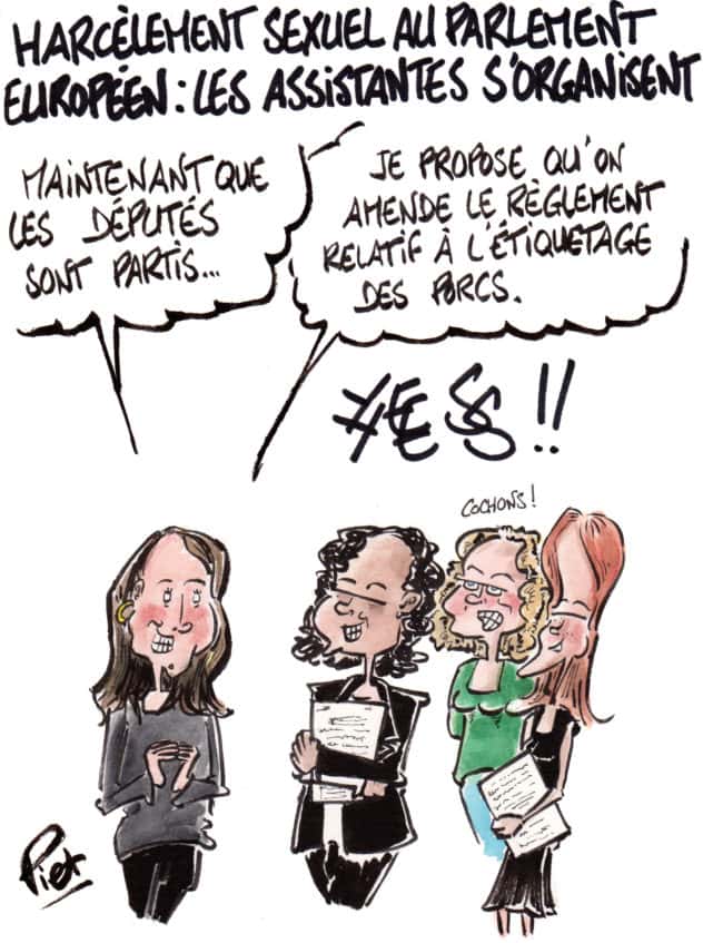 La bulle européenne aussi « balance ses porcs ». Tenue d’un cahier noir par une assistante parlementaire, formulaire en ligne qui fait remonter les cas de harcèlement, d’agressions, voire de viols, groupes d’entraide… Ces initiatives ne doivent pas faire oublier une réalité : la verticalité des rapports de travail souvent observés entre hommes et femmes et le faible nombre de dépôts de plainte laissent les abus bien souvent impunis.