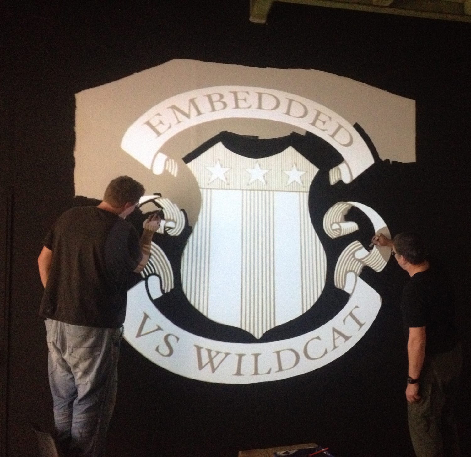 L’un des murs du Syndicat Potentiel est occupé par une grande fresque peinte où on lit « Embedded vs Wildcats ». Ces termes désignent d’un côté les journalistes embarqués avec les troupes militaires (embedded = intégré), de l’autre les indépendants. A.D. soulève une question fondamentale :