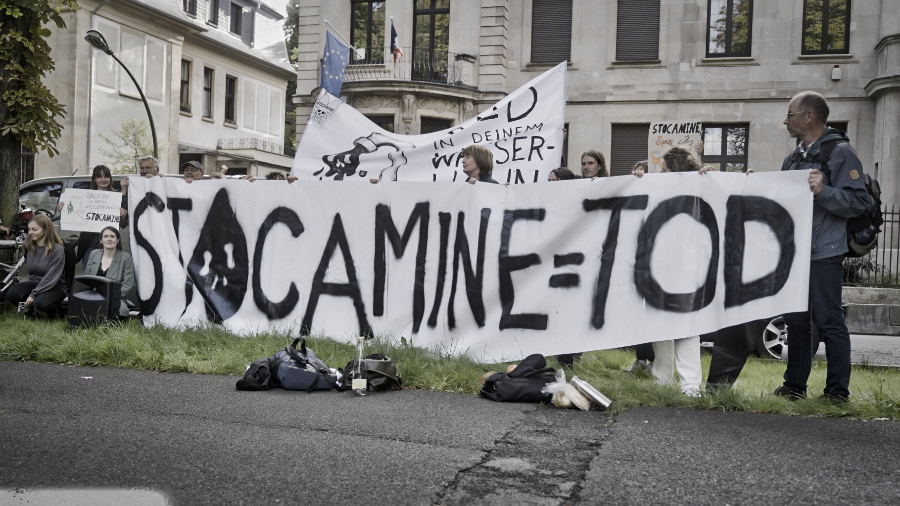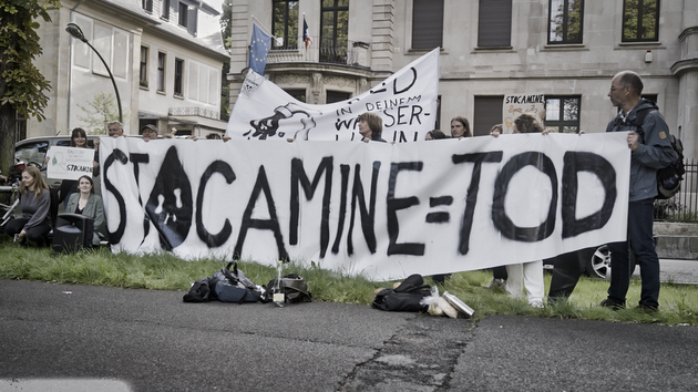 Entre-temps, des activistes environnementaux ont également pris conscience de la question de Stocamine. Le 31 août, des manifestants se sont rassemblés devant le consulat général français de Francfort. L’action a été initiée par Eva, une étudiante allemande de 25 ans, membre d’Endfossil occupy