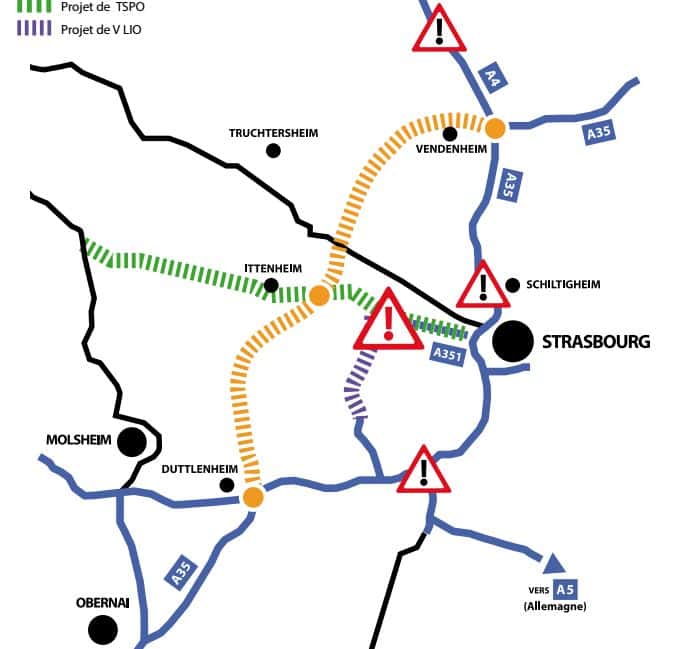 Alsace Nature ne laisse pas tomber cette piste et propose la création de parking-relais en limite de l’Eurométropole, là où seront situés les terminus des lignes de tramway étendues vers l’ouest. Alsace Nature appelle aussi à l’accélération des projets routiers du Conseil général du Bas-Rhin, le TSPO (un bus qui dispose de sa propre voie de circulation jusqu’à Wasselonne) et la VLIO (voie de liaison intercommunale), reliant l’ouest et le sud de l’agglomération. Deux projets qui semblent revenir d’outre-tombe, mais dans le dossier du GCO, on ne s’en étonne plus.