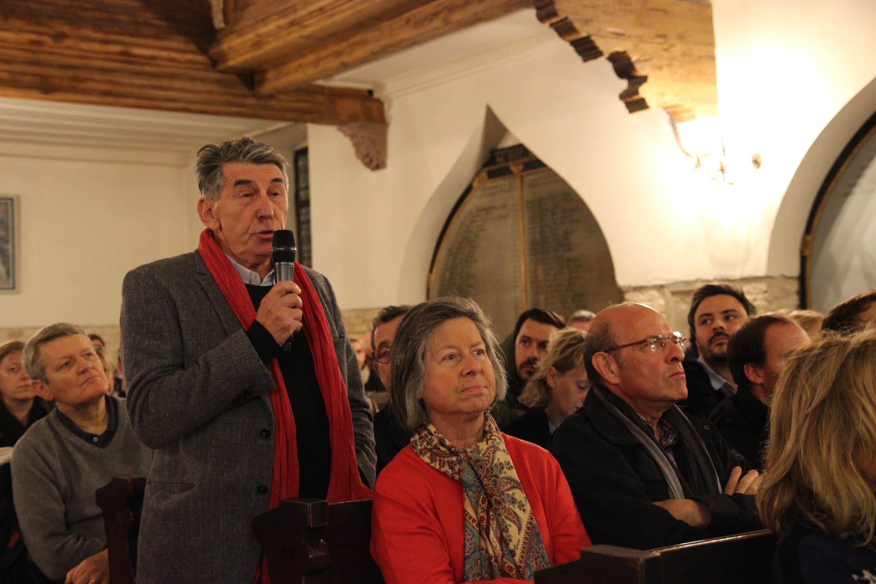 Dans l’église Saint-Guillaume, le projet municipal a été plutôt bien accueilli par le public. D’un bord comme de l’autre, les participants qui ont pris la parole ont salué un compromis. L’Association des habitants de la Krutenau (Abakh) a toutefois rappelé que la grande majorité des participants à la concertation avait plébiscité un secteur piétonnier, et regretté que le choix retenu réponde à des raisons purement commerciales. Jean Saumer, pour le conseil de quartier de la Krutenau, a salué « l’effort pédagogique » de l’équipe municipale pour mener la concertation publique avec « succès » :