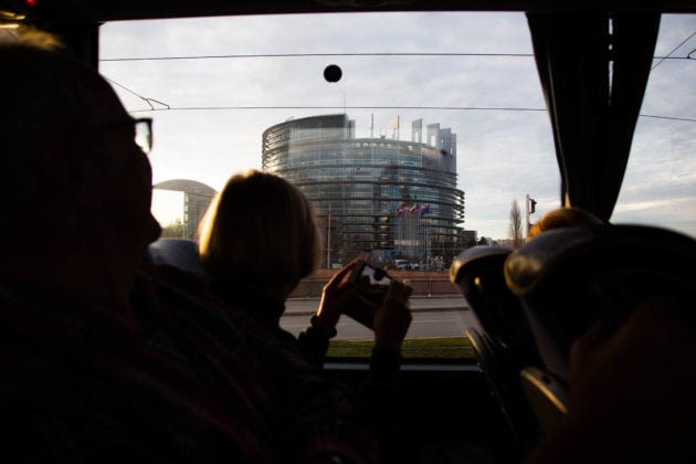 11h30. Embarquement à bord du bateau-mouche. Les touristes verront le Parlement européen pour la troisième fois en deux jours, puisqu’ils l’ont visité la veille. Il faut dire qu’un eurodéputé allemand a payé le voyage des visiteurs, venus de la même circonscription de Rhénanie du Nord.