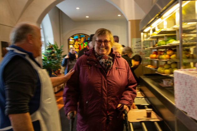 Devant un plateau plein, entre frites, burger, soupe et yaourt, Gerda tient à raconter son histoire d’amour française. Née en 1952, elle a échangé des lettres avec un certain Francis Grevon dans les années 60, après avoir visité son village en Normandie, Poix du Nord. Son voisin d’en face renchérit avec une autre amourette française de jeunesse. À la fin du repas, Gerda tient à nous donner son adresse postale : « Peut-être que Francis lira votre article ? J’aimerais beaucoup qu’il m’écrive ».