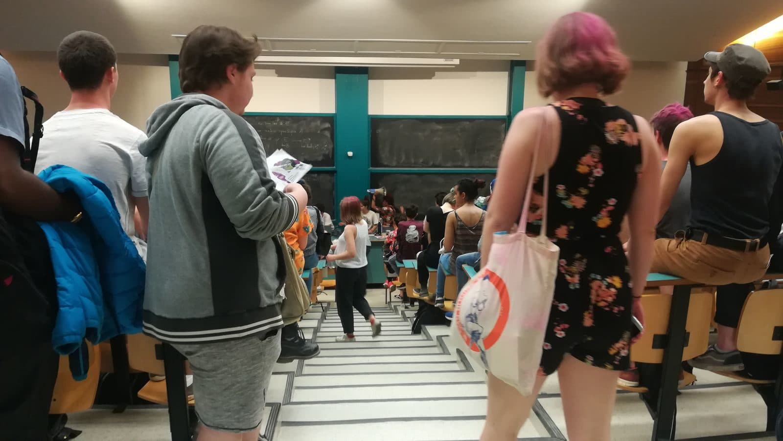 Juste après la manifestation de jeudi, les étudiants ont tenu une assemblée générale dans ce bâtiment, à laquelle ont participé environ 400 personnes selon un comptage approximatif de Rue89 Strasbourg (800 selon eux), avec comme ordre du jour un bilan de cette journée de mobilisation nationale. Les étudiants se sont félicités de constater que des professeurs de l’Université rejoignaient le mouvement de protestation global contre la loi Orientation et Réussite Etudiante et le système ParcourSup, qui limitent les orientations et les accès aux études supérieures.