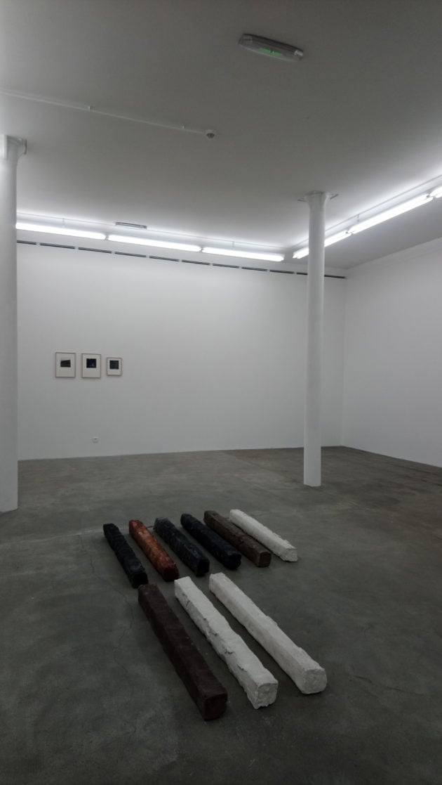 Les six sculptures présentées ont été créées à partir de la répétition d’une même action. Qu’il s’agisse de la manipulation de la matière par l’artiste ou de l’empreinte successive des moules, chaque œuvre est constituée d’un ensemble de volumes à géométrie organique et singulière en plâtre teinté. Ils sont disposés en série sur le sol ou les uns au-dessus des autres pour créer des structures poreuses aux couleurs minérales.